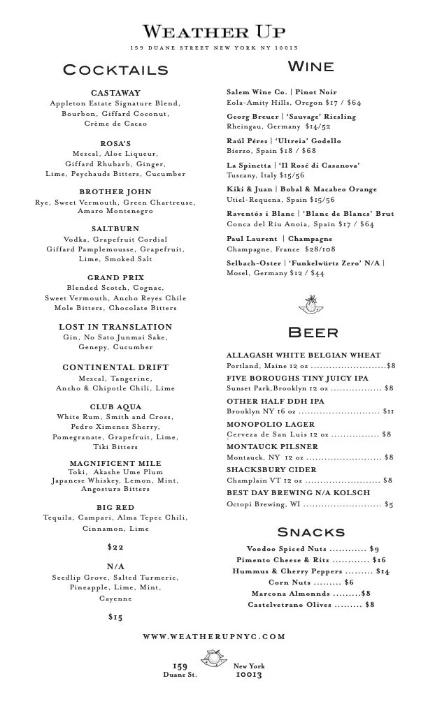Tribeca Menu Spring 2026