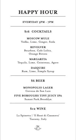 TRIBECA MENU